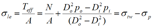 as shown in the above Riser In-Wall Stress System figure. The effective stress is the amount by which the axial wall stress σtw exceeds the in-wall hydrostatic stress σp, and is analogous to the deviatoric term used in solid and soil mechanics.