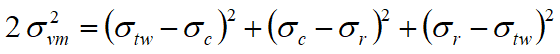 The von Mises stress, σvm, for the triaxial system of the above Riser In-Wall Stress System figure is given by: