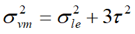 Here, pi and po again represent internal and external pressure, and Di and Do are effective internal and outer diameters. σp is a constant hydrostatic stress and τ is a distortional shear stress, as shown in the representation on the right in the above Riser In-Wall Stress System figure. The effective stress σle is defined by: