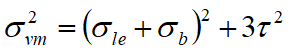 Of course, when the pipe of the above Riser In-Wall Stress System figure is subjected to bending in addition to tensile and pressure forces, the resultant bending stress (σb say) must be added to σle when calculating σvm. Therefore the Equation directly above becomes: